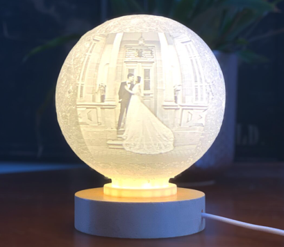 Proyección circular de imágenes que crea un efecto envolvente al iluminarse. Puede tener una imagen y el resto una luna/mapamundi, o crear tu propia esfera de imágenes, tú eres quien decide como inmortalizar esos momentos únicos en forma de arte luminoso.
